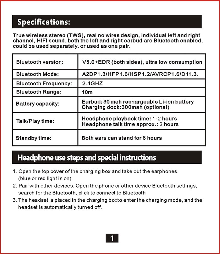 无线双耳立体声音乐耳机说明书